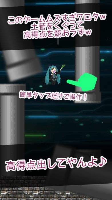 ミクをタップして土管のあいだをくぐり、高得点を狙おう!