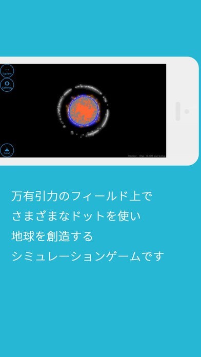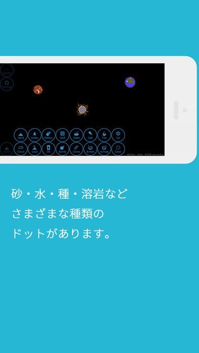 地球を創造するシミュレーションゲームで指でなぞるようにして土や水などのドットを画面上に出していくと中央にあるコアに引き寄せられていって地球が誕生するので簡単に地球を作って遊べて良いです。