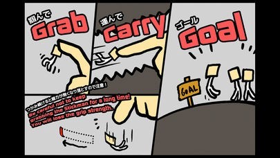 棒人間を引っ張ってゴールを目指します。途中でトラップに触れると、やられてしまいます。棒人間をつかみ続けると握力が無くなり落とすので注意!アイテムを取りつつ、より早くゴールを目指そう!