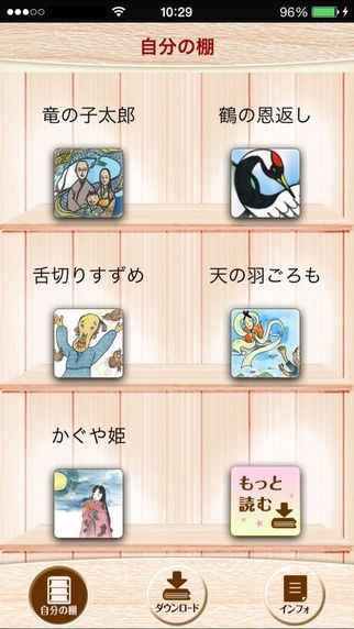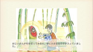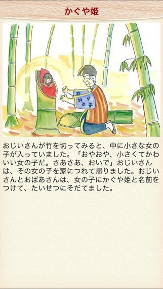 絵本は日本の名作で、読みたいものをダウンロードして使用する