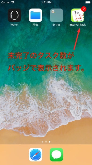 4. アプリを起動していなくても実行予定日を過ぎたタスクの数がバッジで確認出来ます。