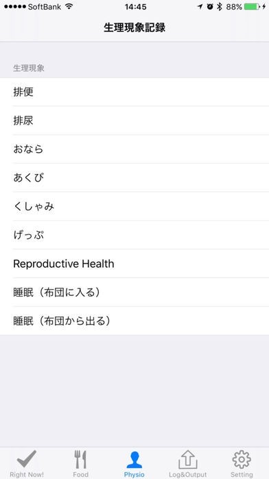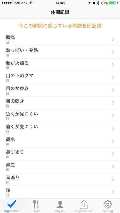 1.「体調記録」ではあなたがその瞬間に感じているカラダの感覚をスムーズに記録できます。微かな体調の変化やちょっとした不快感などは、忙しい日常に埋没してしまうのが常です。"SENSE Me"を使い続けることによって、あなたの感覚はさらに研ぎ澄まされるでしょう。