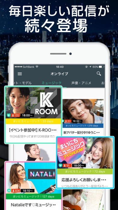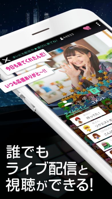 アイドル、声優、お笑い芸人から一般ユーザーまでさまざまな人たちのリアルタイム動画配信を見ることができる!