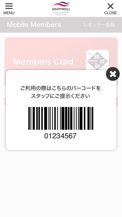 会員証機能搭載!バーコード画面を店頭で表示して会員証として利用可能!