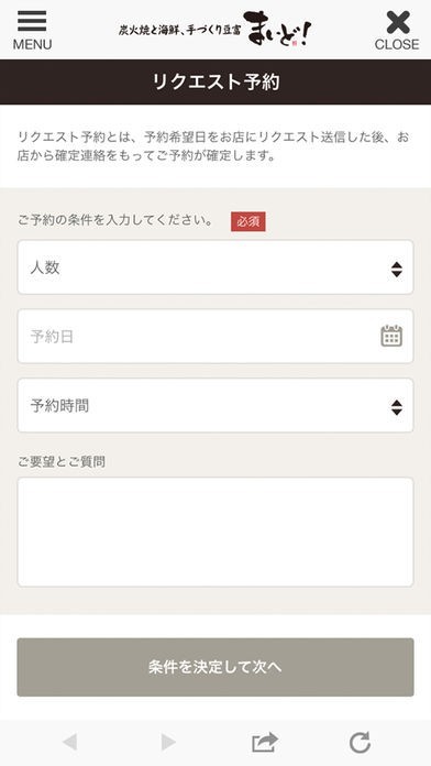 予約機能搭載!日時と人数を入力して楽々予約完了!