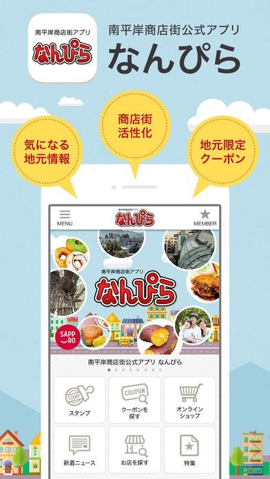 南平岸商店街を多くの人たちに知っていただき、楽しんで頂くアプリとして、なんぴら限定の地元情報や、なんぴら限定のお得なクーポンなどを皆さまへお届けします!