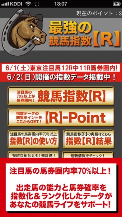 ※競馬指数【R】のポイントは他のアプリでは使えません。