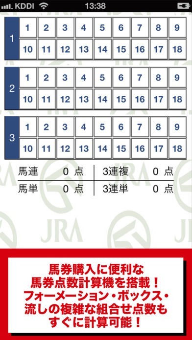 手間のかかる馬券の点数計算もこのアプリだとすぐにできていいです。