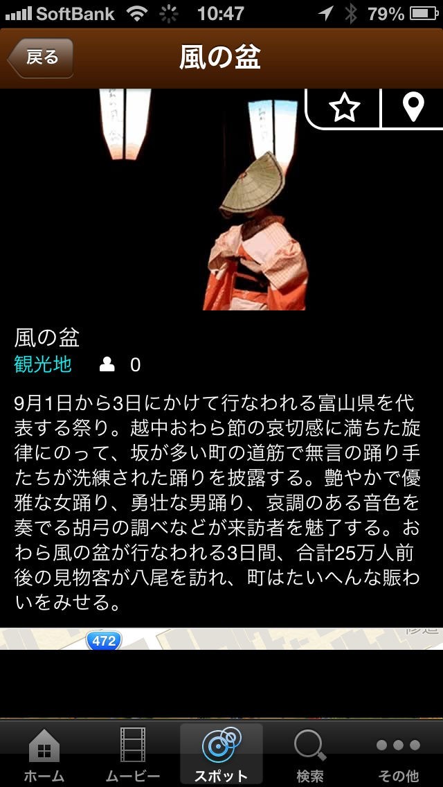 ムービーの舞台となっているスポットの詳細情報をすぐにアクセスすることができます。