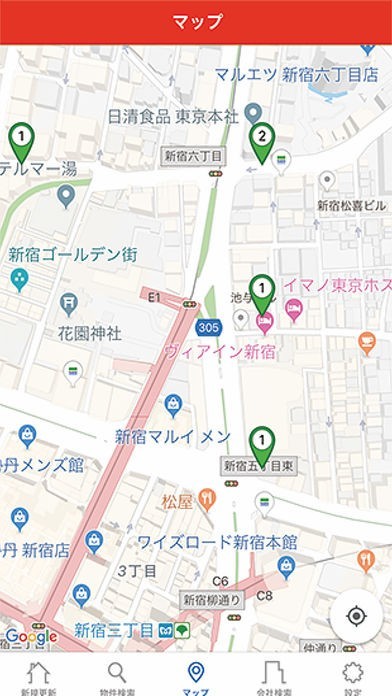 ・地図検索で指定エリアの空室を検索できます。