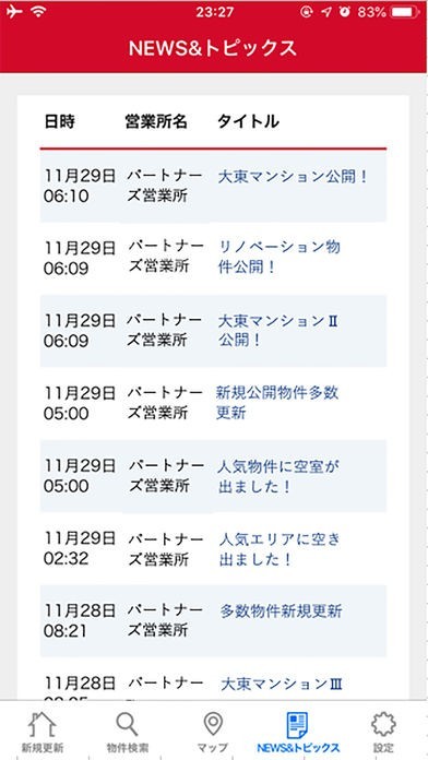 ・設定された営業所からのNEWS&トッピクスを閲覧できます。