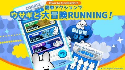 遊び方は簡単、ゲームが始まったら画面下に表示される左右とジャンプのボタンをタップして障害物にぶつからないように避けつつ、ウサギの好物の人参でスタミナを回復してどこまでも走るといったお手軽アクションです。単純だからこそハマり、そして新記録を追い求めたくなるゲームです。