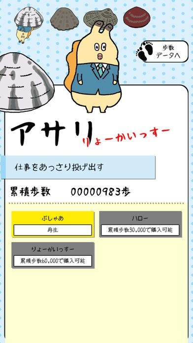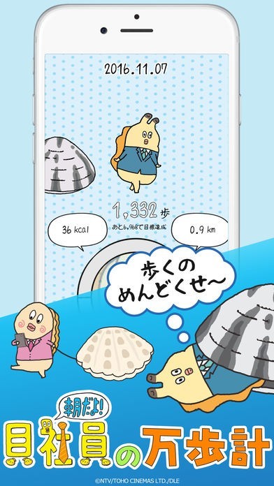 貝社員の万歩計は、ウザかわいい貝社員と目標歩数の達成を目指すアプリです。
