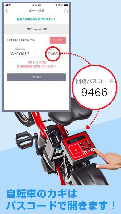 スマホ上から予約をし、サイクルポートでパスワードを入力すればすぐに利用を開始することができます。いちいち個人情報を入力しなくても良いので、会社への通勤などで日常的に使えます。
