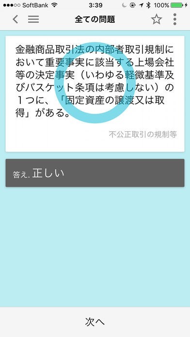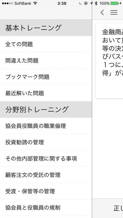 全ての問題を対象にランダムで出題されるほか、分野別に出題したり間違った問題だけを出題することもできるので、効率的に学習していけます。ブックマーク機能も利用できます。
