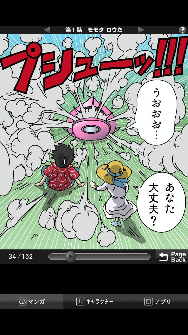 桃太郎をモチーフとしたSF作品「ピーチマン」が全巻無料で読めるマンガアプリで、電子コミックの特徴をフルに活かしたアクションシーンが見どころです。 一コマずつ展開していますので、スマホでサクサク読み進めることができます。操作方法も、画面タッチでページ送り、PageBackボタンでページ戻り、といたってシンプル。テンポも良く、ついつい時間を忘れて読み進めてしまうことでしょう。 また一話一話が短いので、通勤・通学や休み時間などのスキマ時間にも最適です。