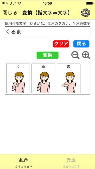 指文字と文字の変換が可能なため忘れた指文字を確認するのに使える