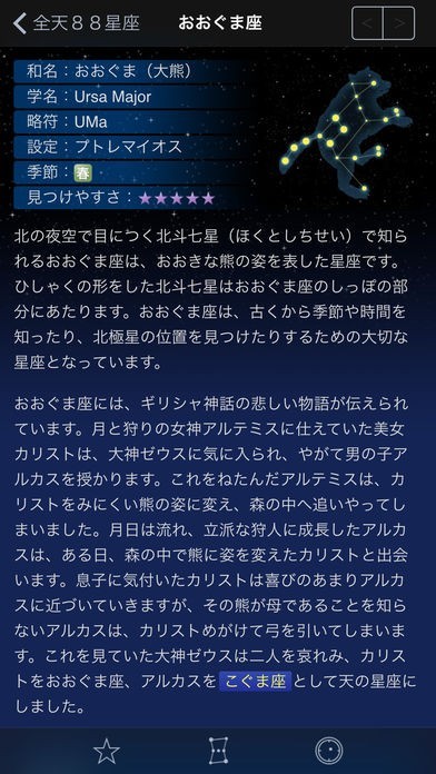 星座の説明について、マニアック過ぎず適度な説明になっています。無料アプリとは思えないクオリティです。