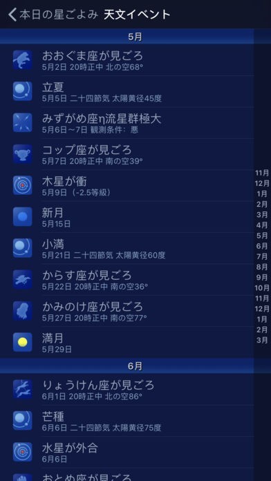 星座の方角が見られる季節なども細かくチェックできて、とても使いやすいです。