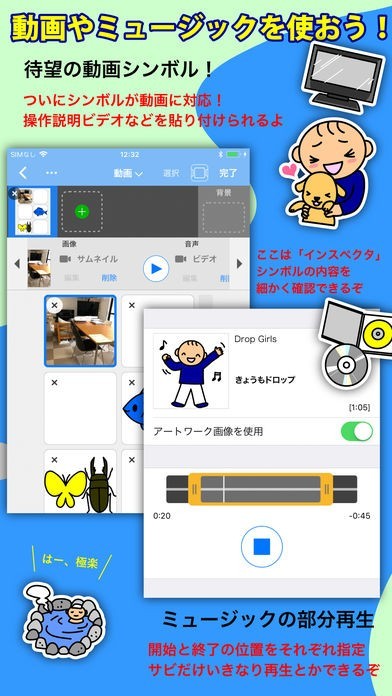アプリ内に登録されているシンボルだけでは表現が足らない場合は、iPhoneのカメラで撮影した画像をシンボルとして使用することができます。カスタマイズ性の高さが魅力的です。
