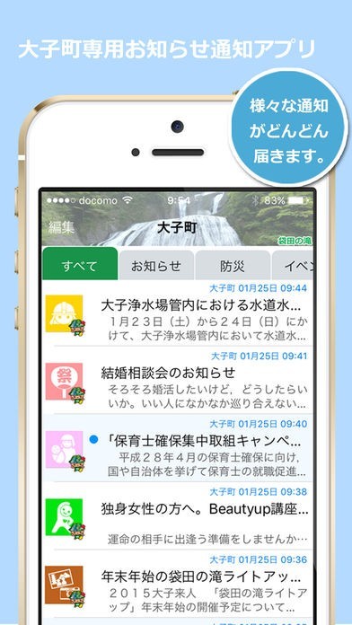 ・お知らせ、イベント、防災などの様々ジャンルから、受け取り