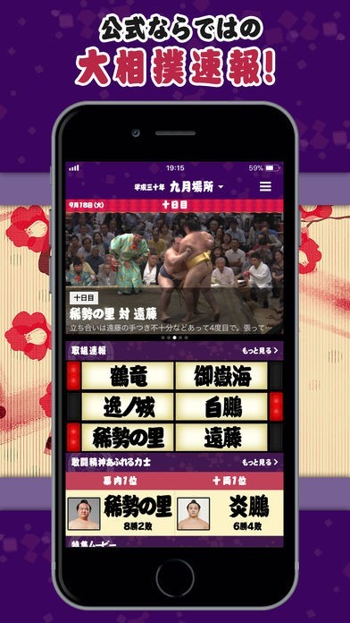 相撲の結果や動画での取組の確認ができて、相撲好きにはたまらなく良いです!