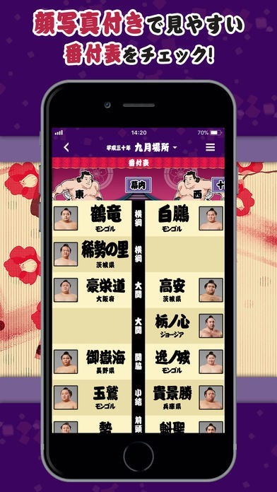 多忙時でも好きな力士の試合結果がすぐにわかる