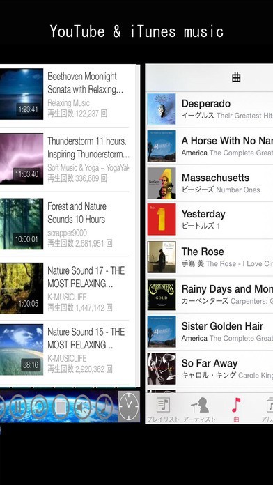 YouTubeの映像やiTunesの音楽を、アプリに収録されている音楽や映像とミックスして楽しむこともできるようになっているので、自分だけのオリジナル動画で癒されることも可能です。