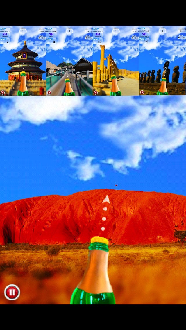 ※ 現バージョンは4ツアー、全40面ですが、今後も世界の滝ゴルフや世界の橋ゴルフなどをアップデートで追加予定です。