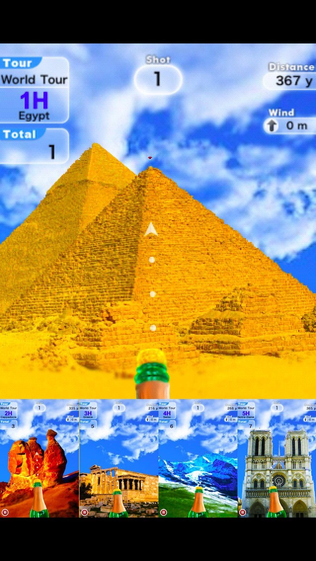 ワイングラスは世界各地のあんなところやこんなところにあります。1つのゴルフツアーにつき10ホールが用意されており、10ホールの合計打数で競います。