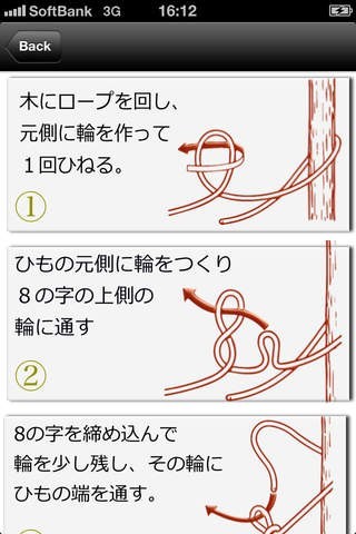 様々なひもやロープの結び方を紹介してくれるのが、「超ひも図鑑」です。生活に役立つひもの結び方がイラストで表示されます。洗濯ロープの結び方はもちろん、包帯の巻き方まで詳しく知ることができます。生活の不便さの改善、アウトドアの備えなど様々な場面で役立ちます。結び方は使用シーンごとに分けられており、その時に必要な結び方がすぐに見つかります。わかりやすい説明をみながら実践できるので、すぐに正しい結び方を身に着けることが可能です。