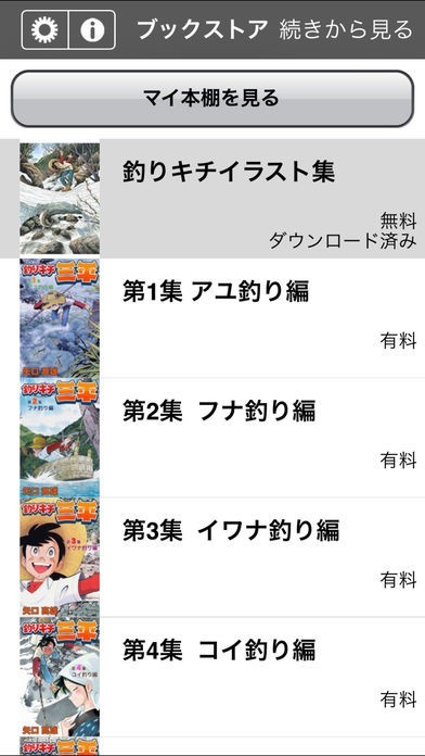 趣味で釣りをしているという方にも最適。マイ本棚から購入済みのコミックはいつでも閲覧可能!