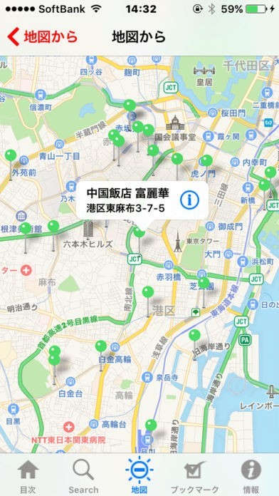 仕事帰りにふと中国料理を食べたくなったらアプリを開きましょう。地図上に中国料理店が表示されます。職場や家に近い場所を見て、良いお店があればすぐに行くことができます。