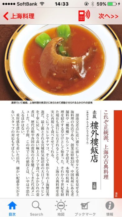 お店の詳細文章はもちろん、美味しそうな中国料理の写真も掲載されています。お店を選ぶときに役立つだつのはもちろん、食欲も増してくるでしょう。ガイドブック代わりになる便利なアプリです。