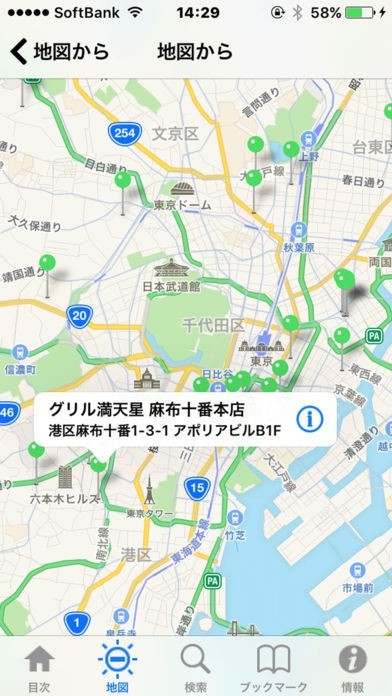 マップを使ってお店の場所がわかる
