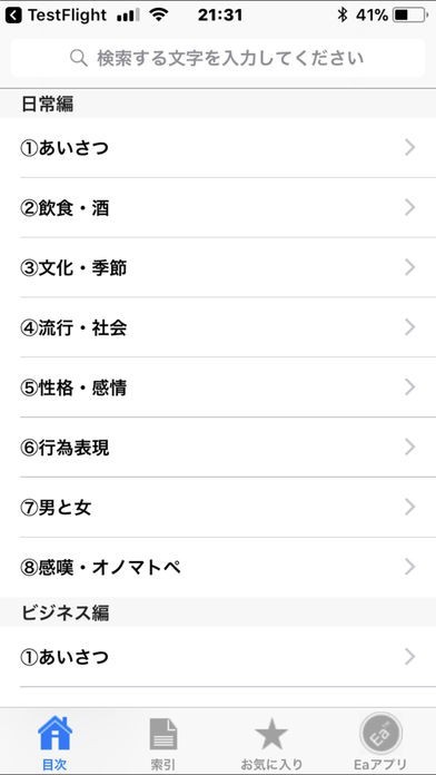 日本語の表現を、絶妙なネイティブの英語で表現したい方におすすめのアプリです。どう表現したらよいか分からない単語や表現もすぐにわかります。カテゴリ別に分けてあるので探しやすいです。