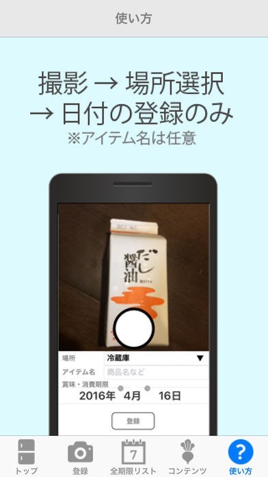 買物をして帰ってきたら、このアプリを使用してから冷蔵庫にしまおう