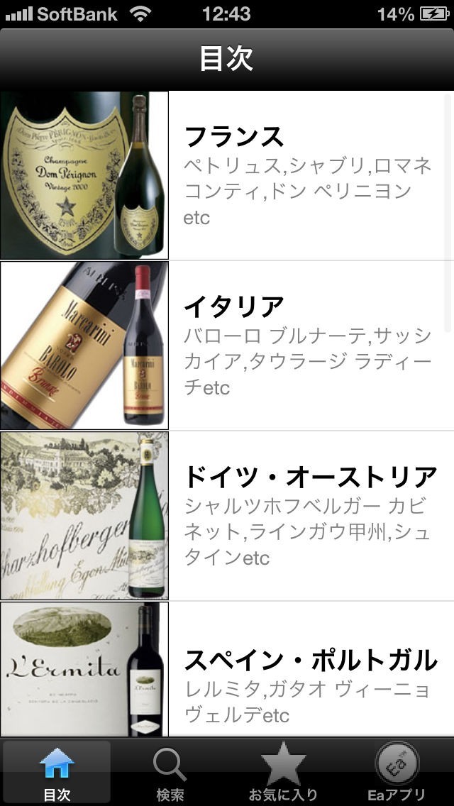 フランスを中心とした106種類のワインについて、産地や銘柄、品種や価格、渋さなど一本一本細かな詳細が掲載されています。見ているだけで楽しくなる・ワインを飲みたくなる、ワイン好きにぴったりのアプリです。
