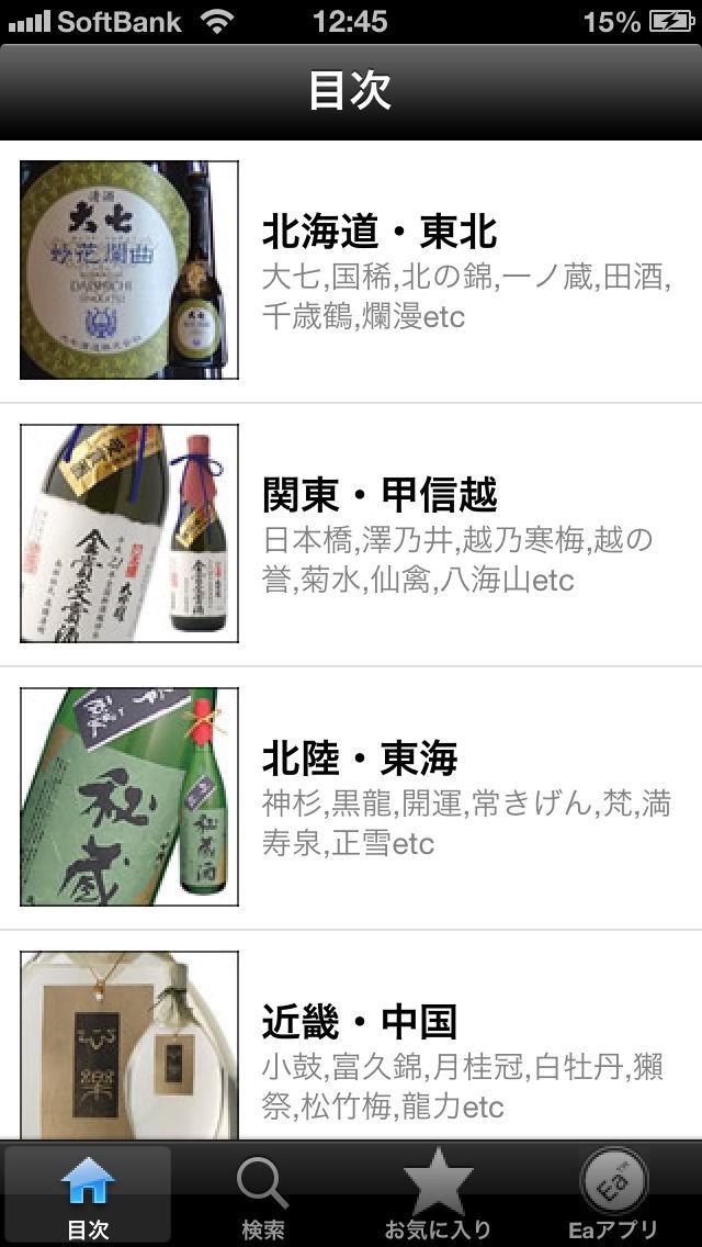 様々な地域の日本酒が確認出来る!お酒の特徴や用語を調べる事も可能