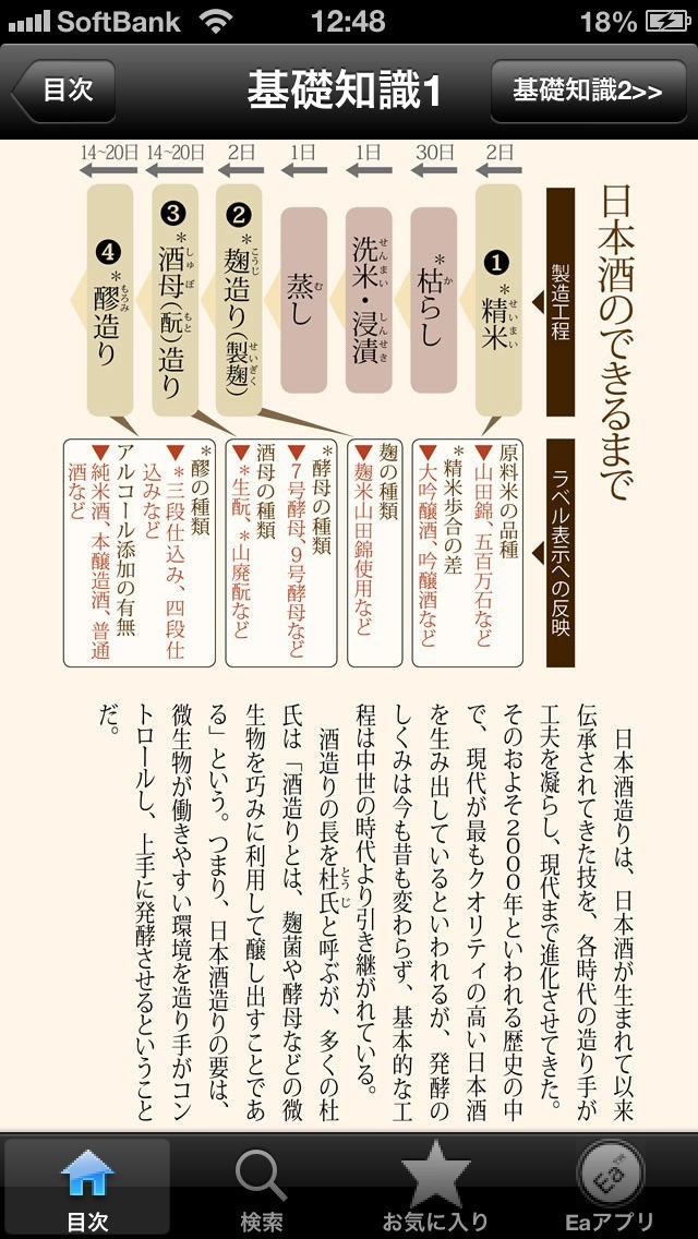 日本酒の基礎用語を確認する事が可能で、商品の特徴や写真をチェック出来る仕様が利点でした