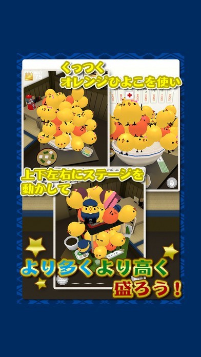 ヒヨコをいかに高く盛れるかを競うパズルゲーム!