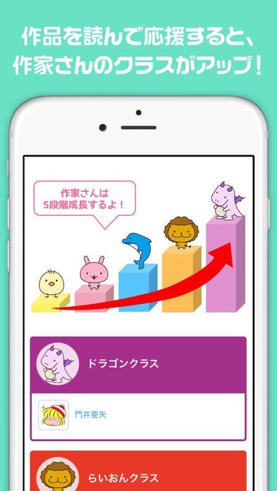 『みんなのコミック』では20人以上の作家さんが「ひよこ」「うさぎ」「いるか」「らいおん」「ドラゴン」の5つのクラスに分けられており、読者の皆さんの【応援】でランクアップ!作家さん育成型コミック雑誌です。