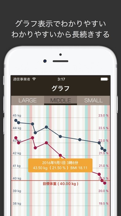 簡単操作で入力可能な記録機能が便利!グラフ機能で目標体重を確認しよう!