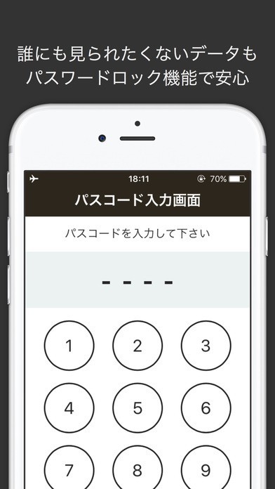 「体重記録帳」は、簡単操作で入力可能な記録機能によって、レコーディングダイエットをサポートしてくれます。体重と体脂肪の2カテゴリーを記録可能。入力画面には専用のキーボードが表示されるため、ちょっとした隙間時間に手軽に記録を完了できるのも嬉しいポイント。グラフ表示機能では、入力した体重や体脂肪に加えてBMIや目標体重も表示してくれます。グラフによって視覚的に表示される数値は、ダイエットのモチベーション維持にも役立ってくれるでしょう。また、プライバシー保護に嬉しいパスコード機能も搭載。4桁の数字をあらかじめ設定しておくことで、第三者の目を気にせず安心して利用できるようになっています。