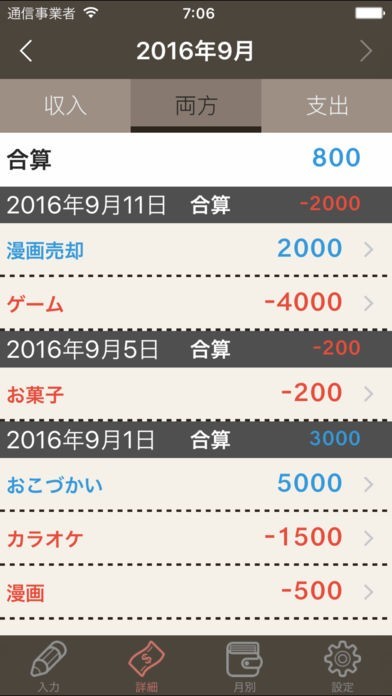シンプルな機能で、お小遣いの管理がしやすいです。合算すると収支の合計が出るところが便利です。