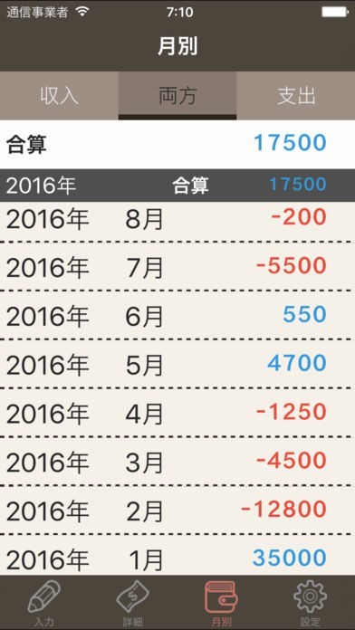 月別に収支状況をチェック出来る!シンプルな操作で情報を入力していける