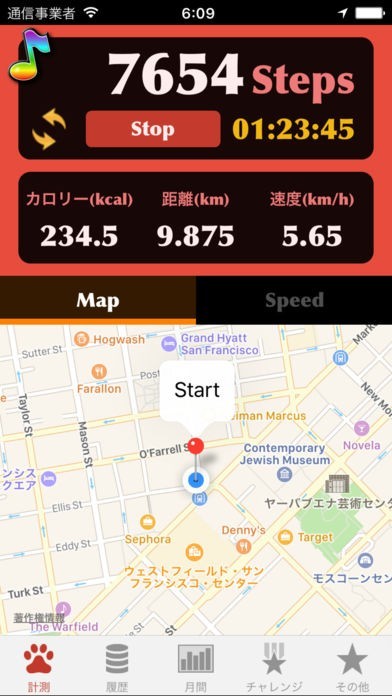 歩いた距離や消費カロリーが当時にわかる