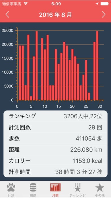 歩行距離に応じたチャレンジ機能を用意