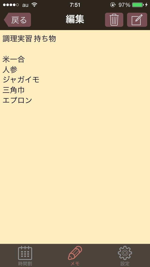 ウィジェットにも対応しているので、時間割を登録後はいちいちアプリを起動する手間がありません。