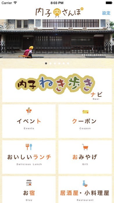 さらに、イベント、クーポン券、おいしいランチ、おみやげ、お宿、居酒屋・小料理屋の情報を得ることができます。